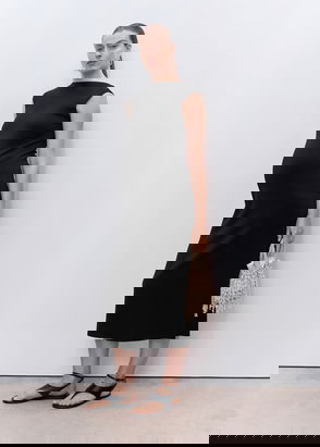 In an A-line silhouette, this midi dress by Mango complements bold accessories with its plain canvas. Framed with a v-neckline and long sleeves, this piece is a care-free option for daytime dressing.