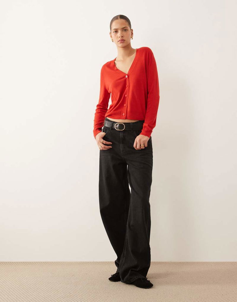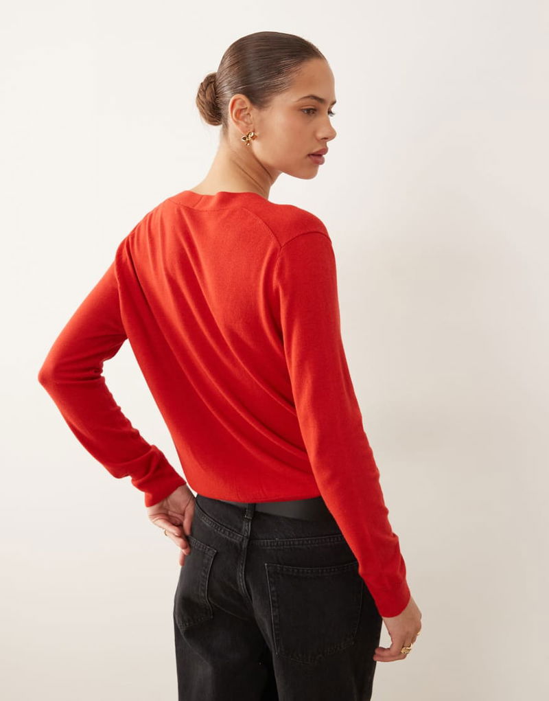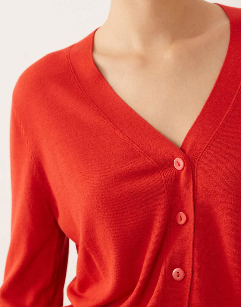 V Neck Cardigan In Red