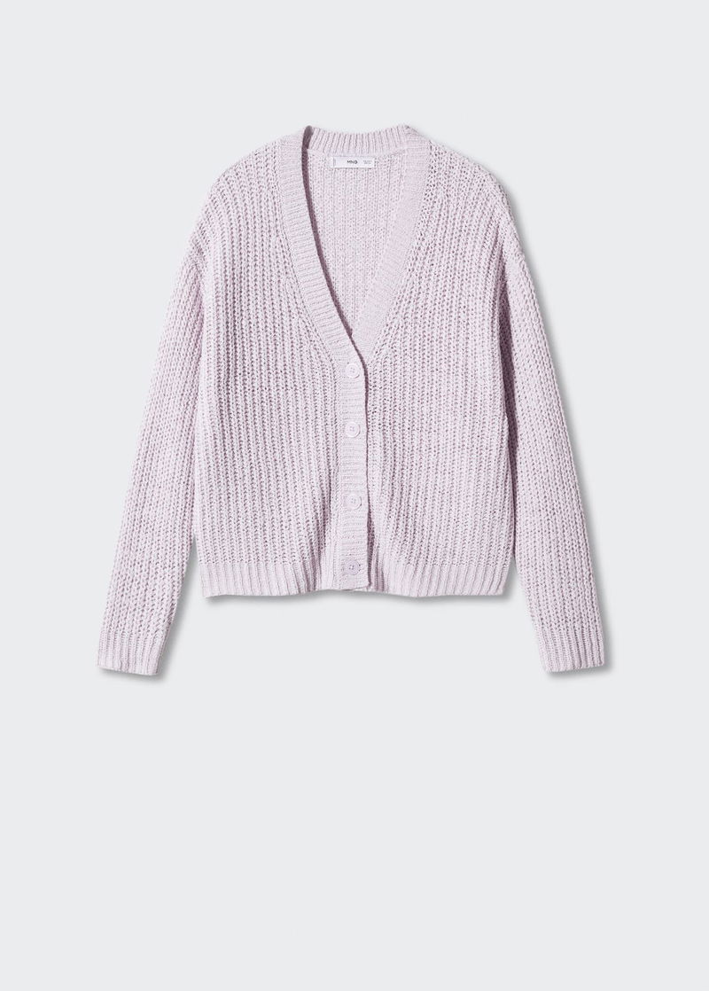Thick knitted fabric, Straight design, V-neck, Long sleeve, Button fastening on the front section, Cable knit finish.