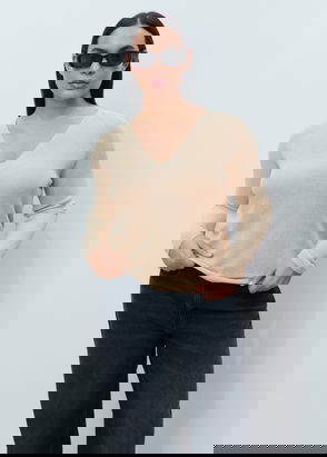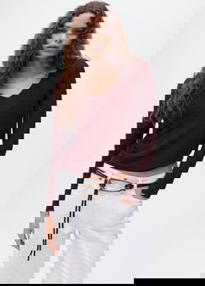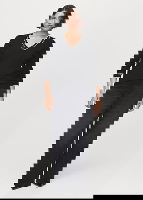 The soft stuff V-neck Long sleeves Ribbed trims Relaxed fit.