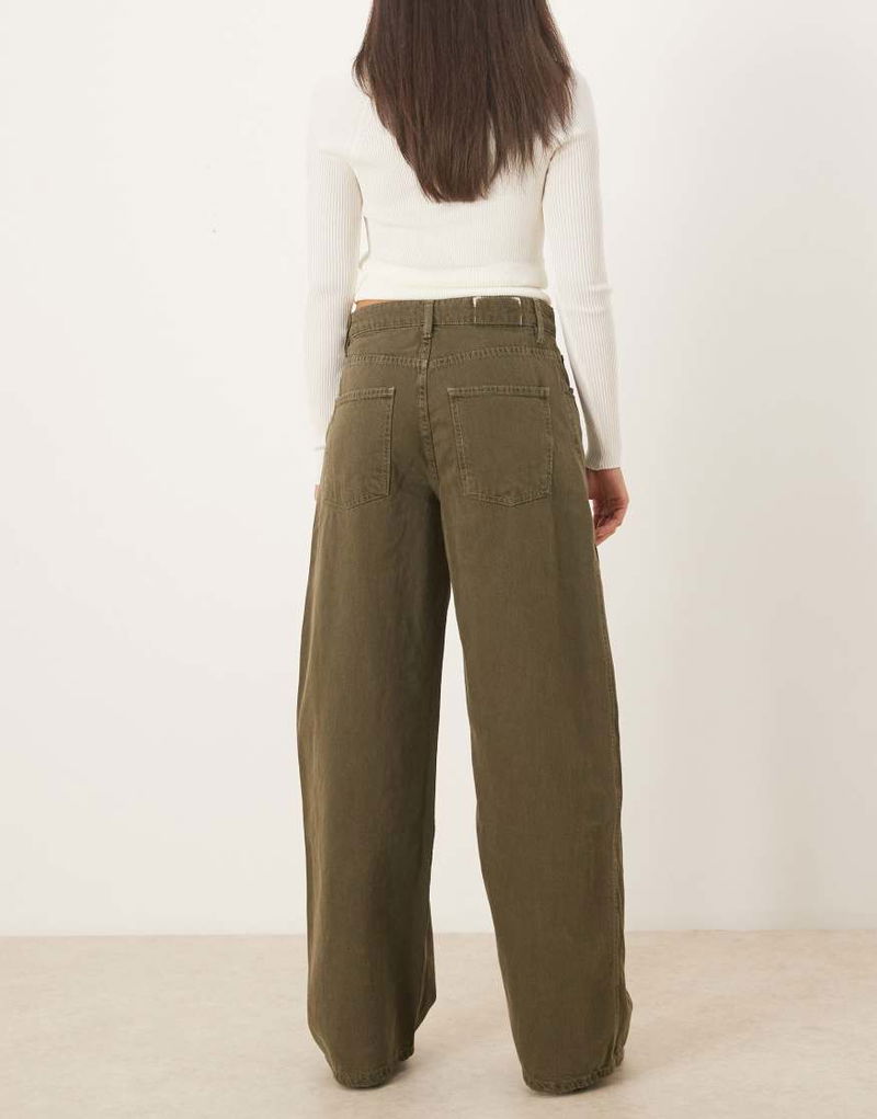 Valentin 100% Cotton Wide Leg Jean In Khaki