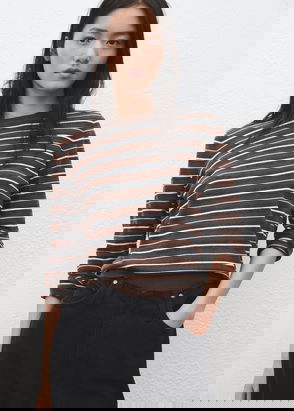 Simple and sweet with its round neckline, this fitted jumper by Mango is made from a lightweight blended fabric with a split hem and long sleeves with buttoned cuffs.