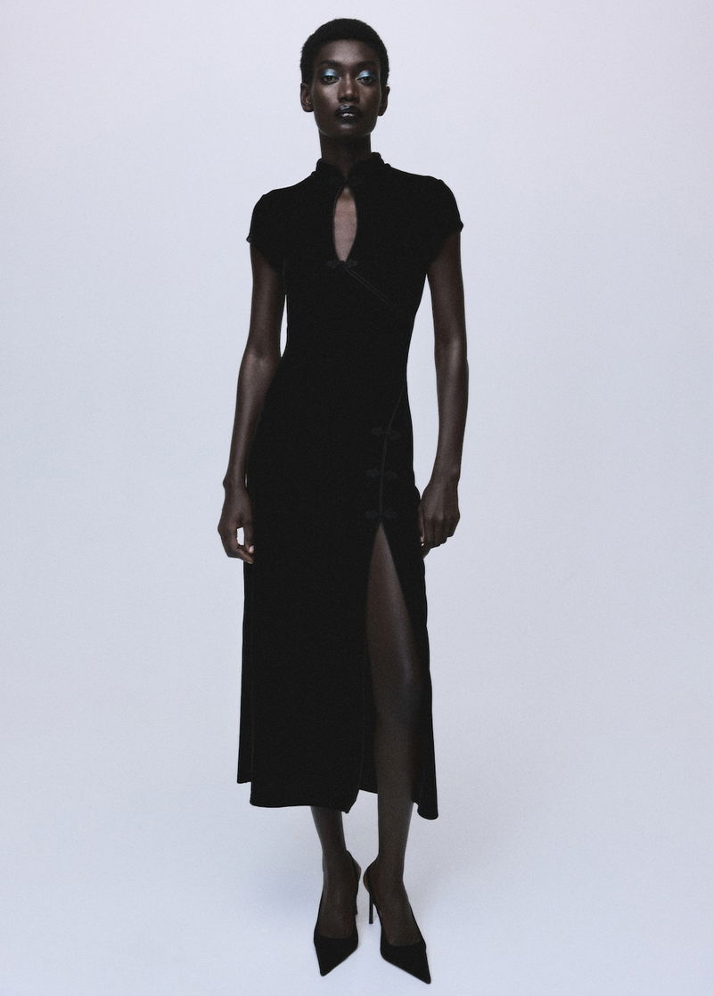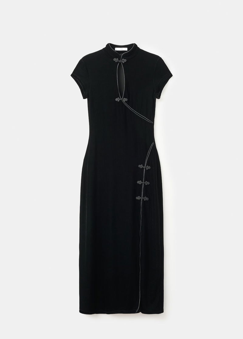Velvet Dress With Toggle Fastenings And Slit