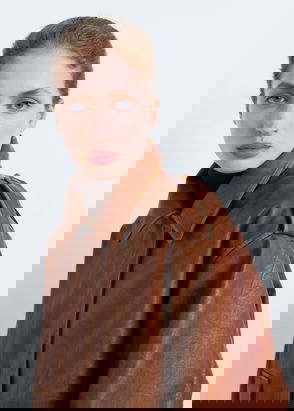 Velvet fabric. Cotton blend fabric. Comfort fabric with elasticity. Short Design. Straight Design. Fur-effect shirt collar. Long sleeve. Two patch pockets and front flap pockets. Front zip closure. Inner lining.