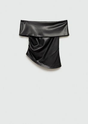 Date-night worthy. Off-shoulder style. Plain design. Cropped length. Regular fit.