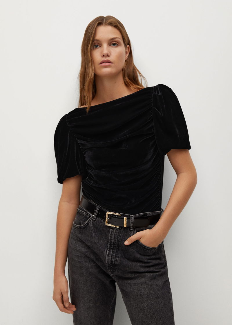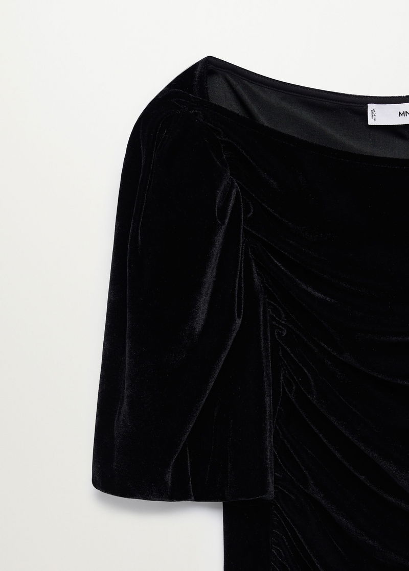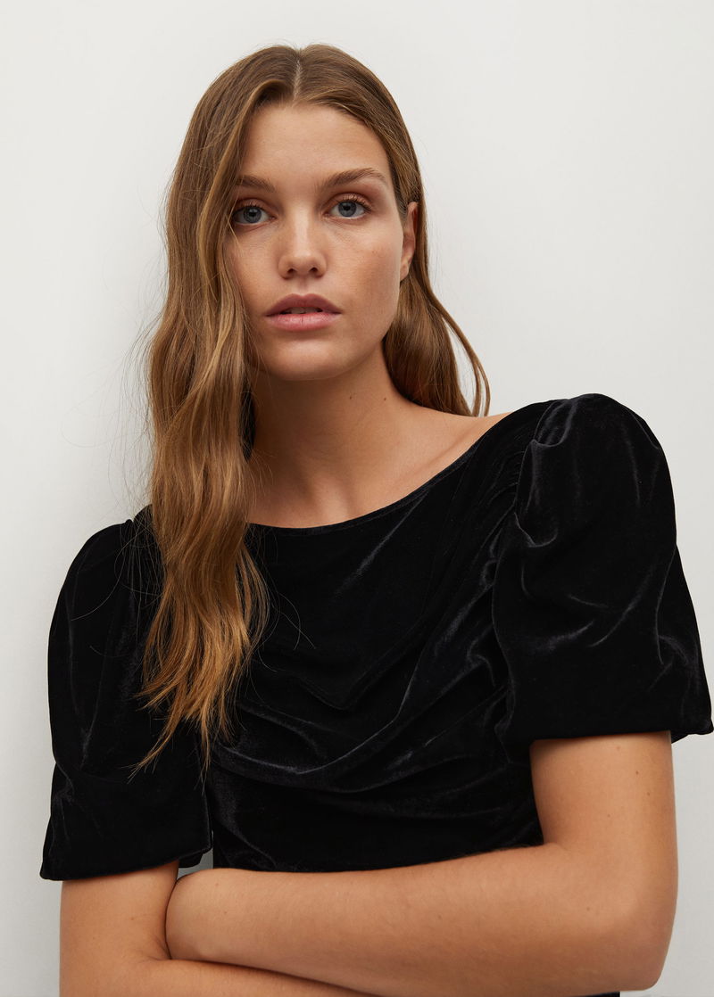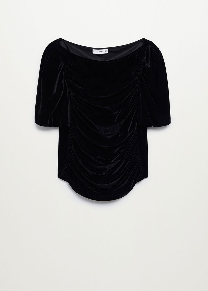 Online Exclusive, Velvet fabric, Draped detail, Rounded neck, Puffed short sleeve, Side length 11.61 in Back length 18.58 in.