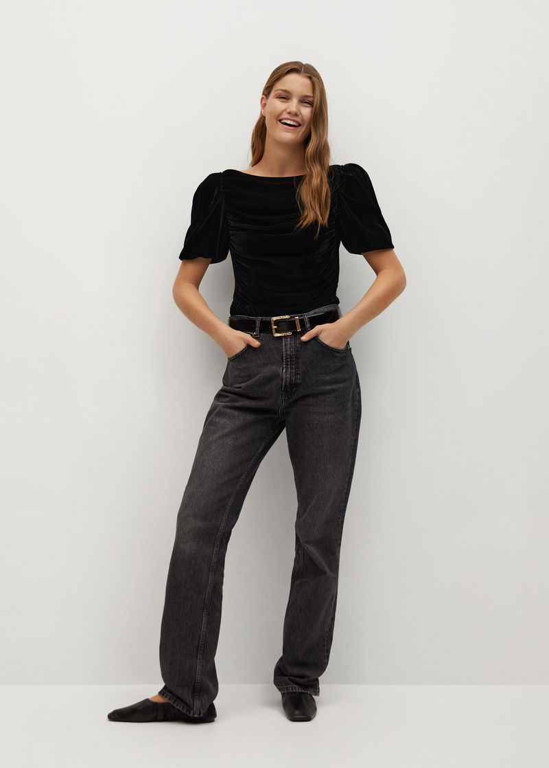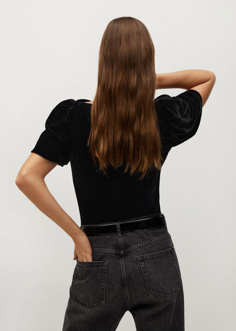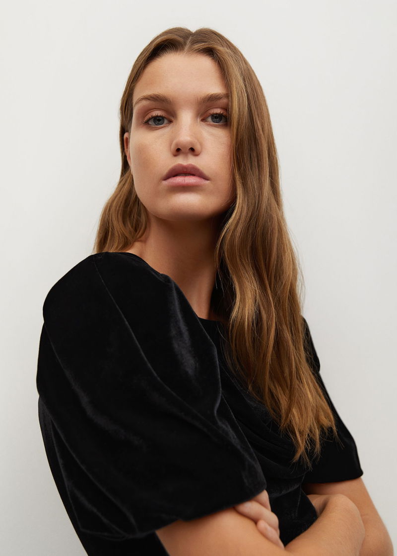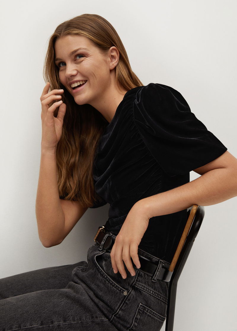 Online Exclusive, Velvet fabric, Draped detail, Rounded neck, Puffed short sleeve, Side length 11.61 in Back length 18.58 in.