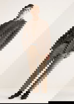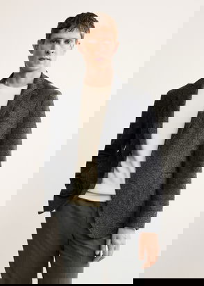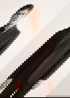 Tailoring collection. Slim fit. Cotton-blend fabric. Notched lapel. Front closure with buttons. Welt pocket on the chest. Two welt and flap pockets on the front. Buttoned strap cuffs. Two openings at the back of the hem. Inside welt pocket.