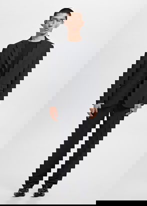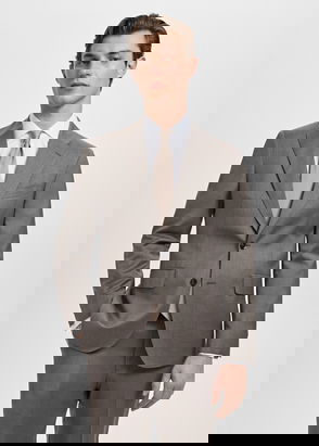Tailoring collection. Slim fit. Cotton blend fabric. Lapel with notch. Front closure with buttons. Chest welt pocket. Two welt and flap pockets on the front. Buttoned strap cuffs. Two openings at the back of the hem. Inside welt pocket. Button up.