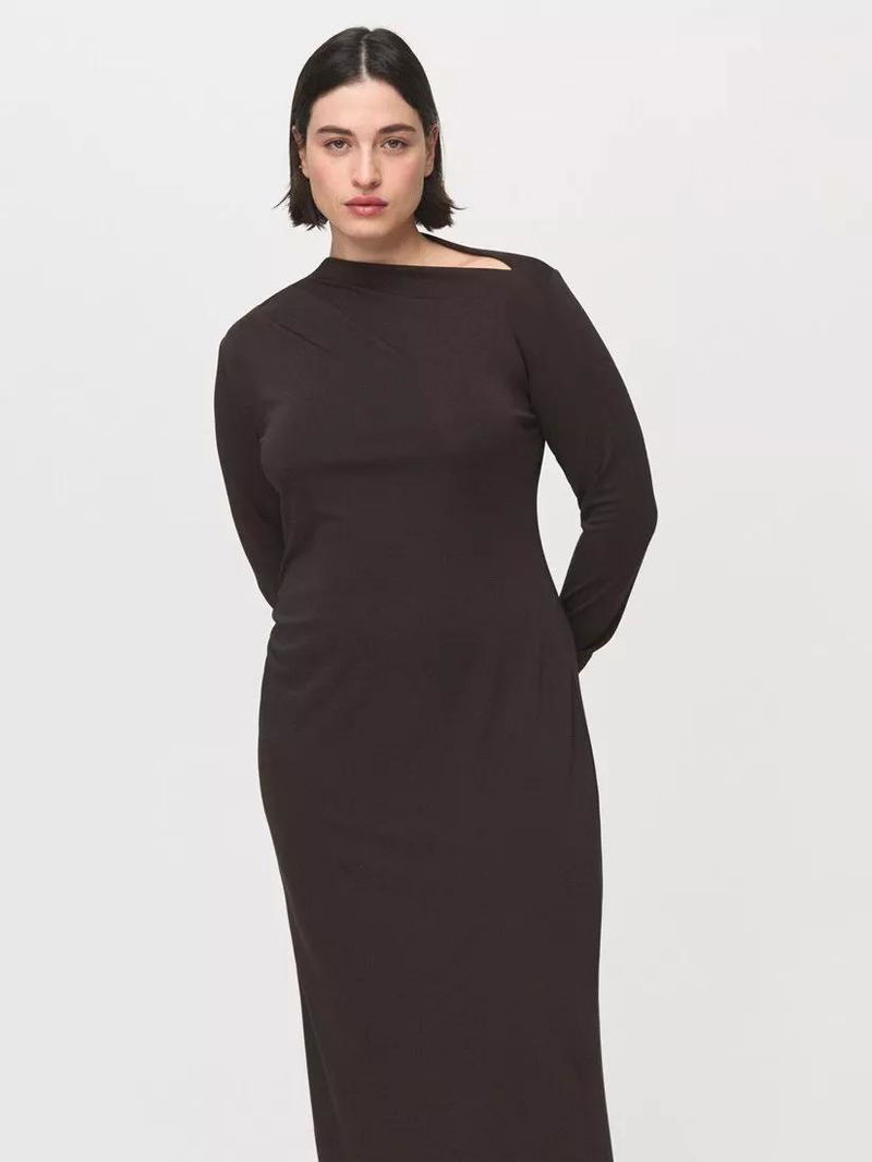 Vestido Asymmetric Drape Neck Maxi Dress, Chocolate