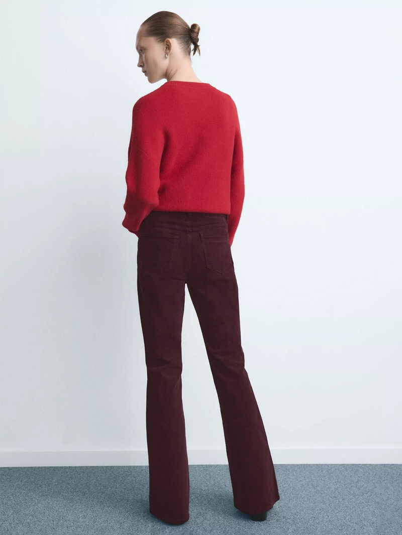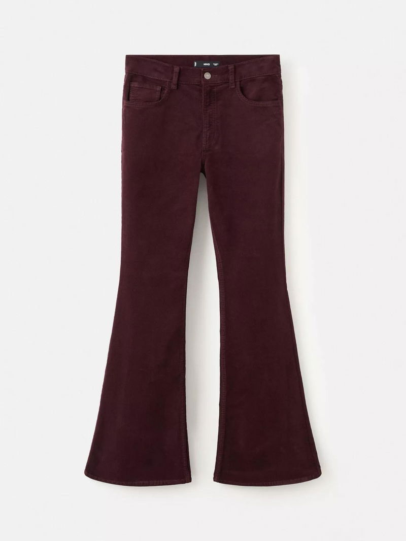 Violet Velvet Flared Jeans, Dark Red