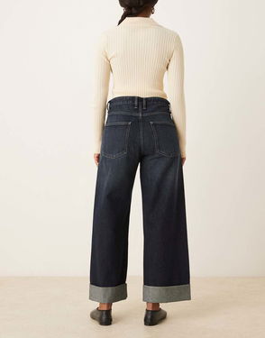 Violeta 100% Cotton Pleat Front Flared Jean In Indigo