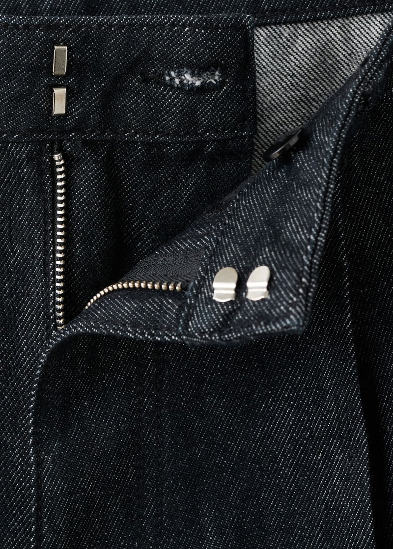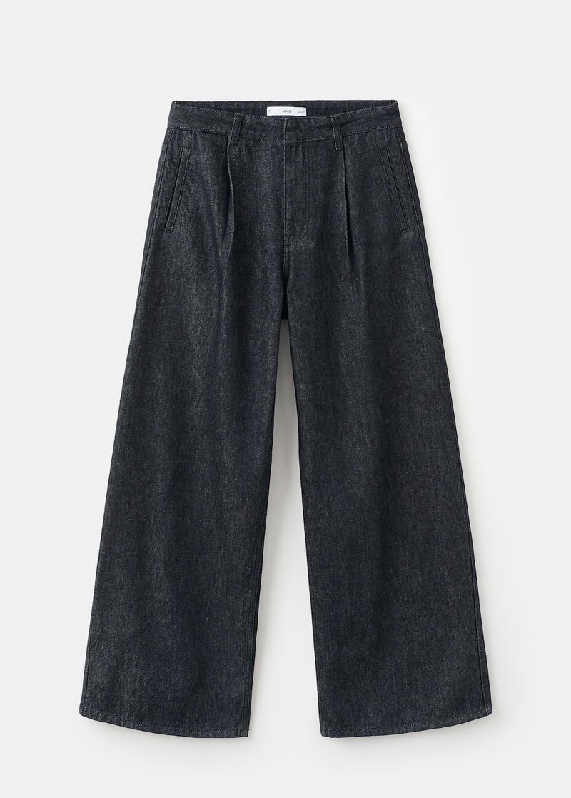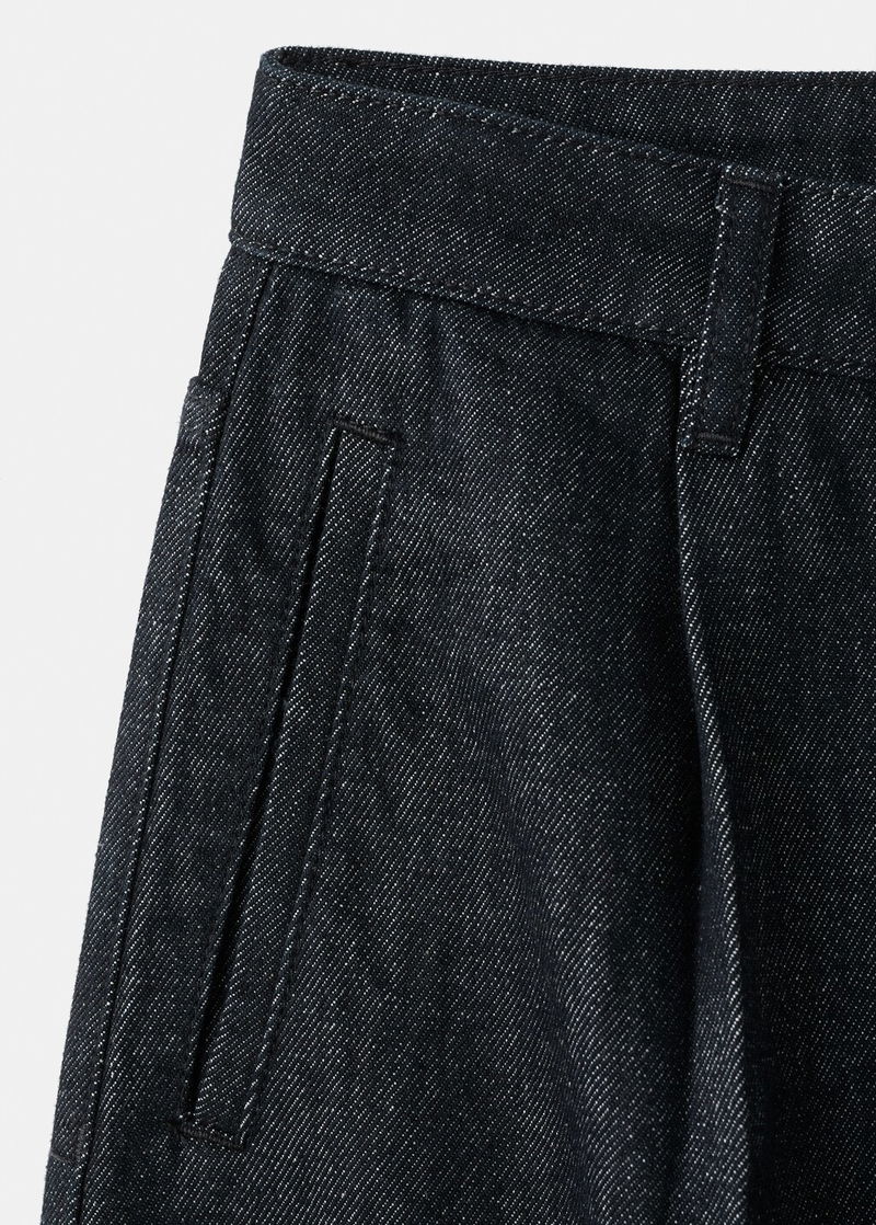 Wide-leg Pleated Denim Trousers