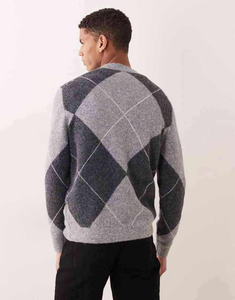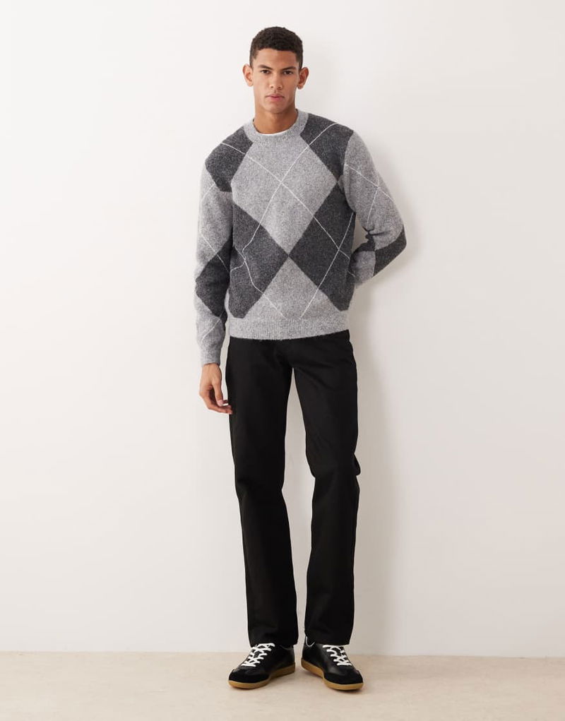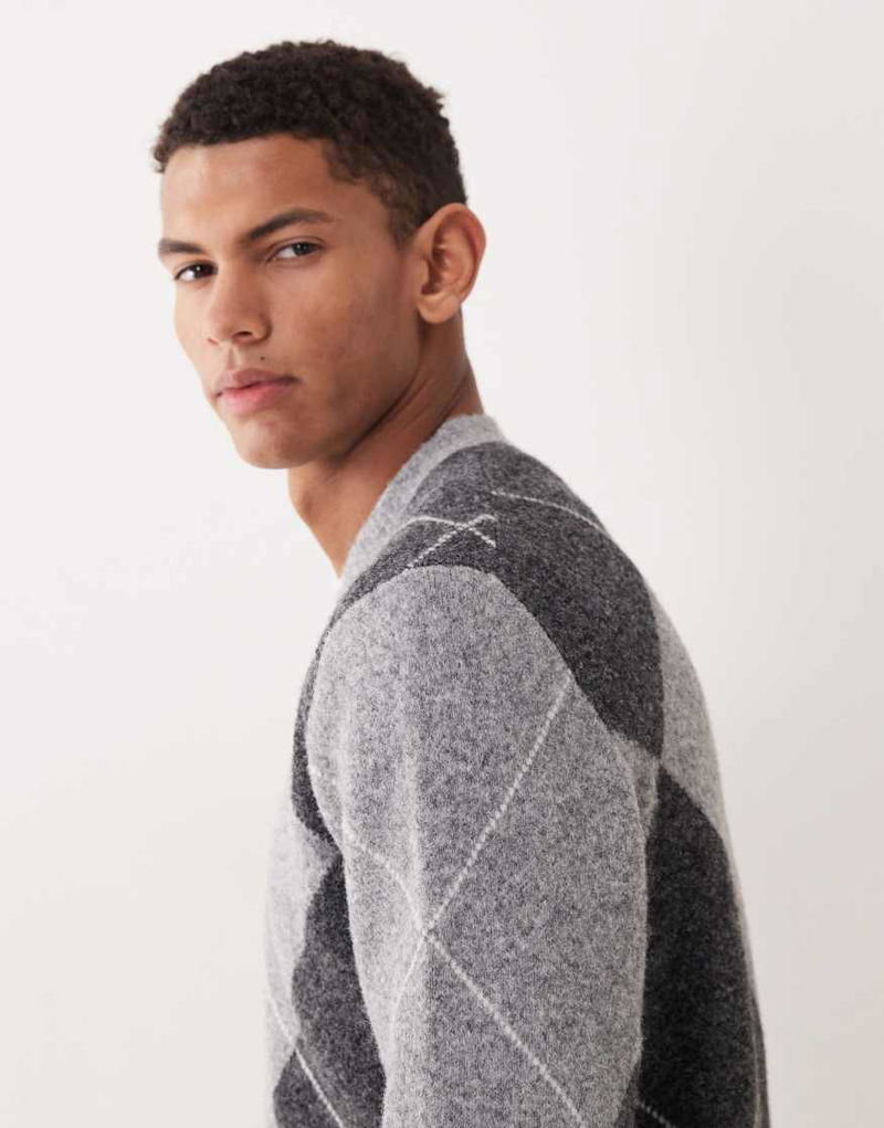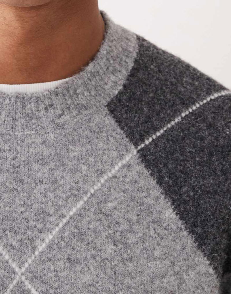 Wool Blend Argyle Jumper In Grey
