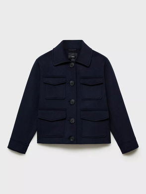 Product on sale. Wool mix fabric. Straight design. Short design. Notched lapel collar. Faux shearling collar. Long sleeves. Two side patch pockets. Concealed front button fastening. Inner lining.