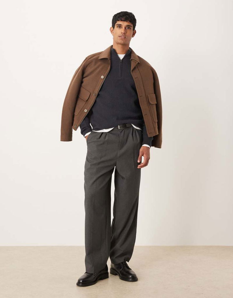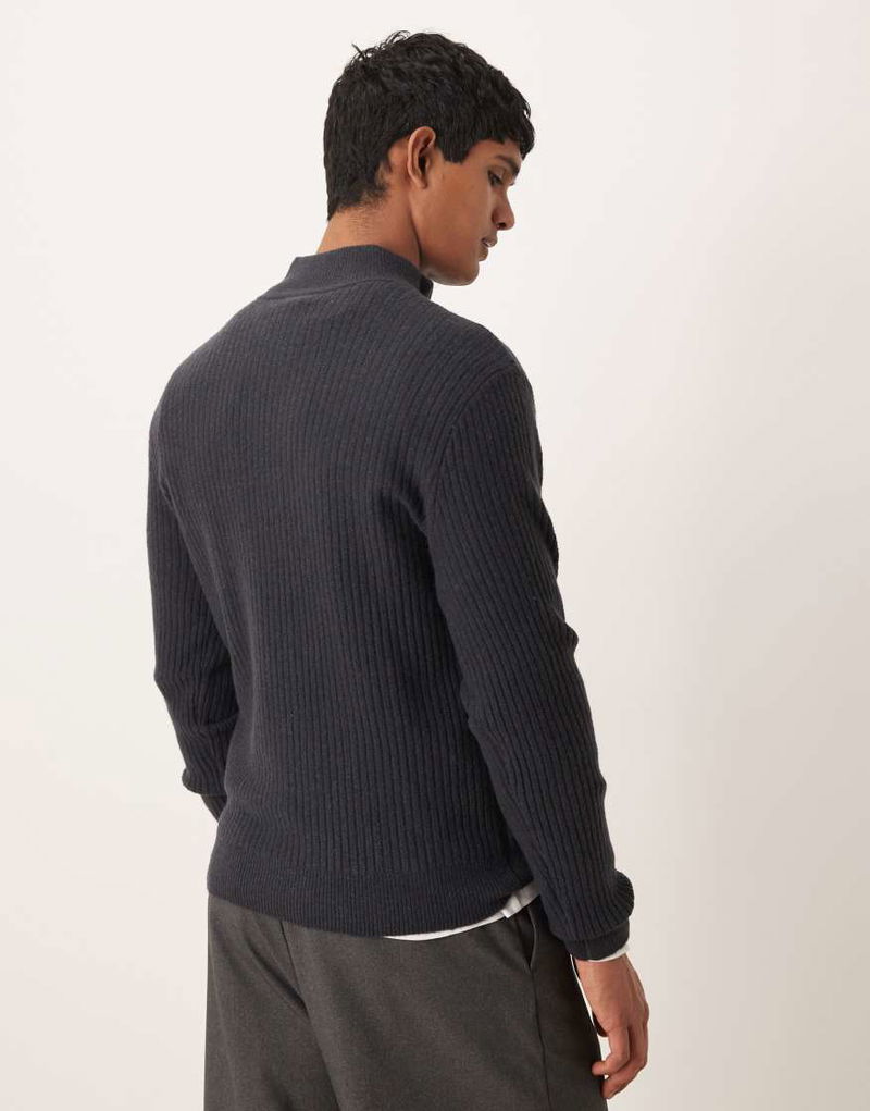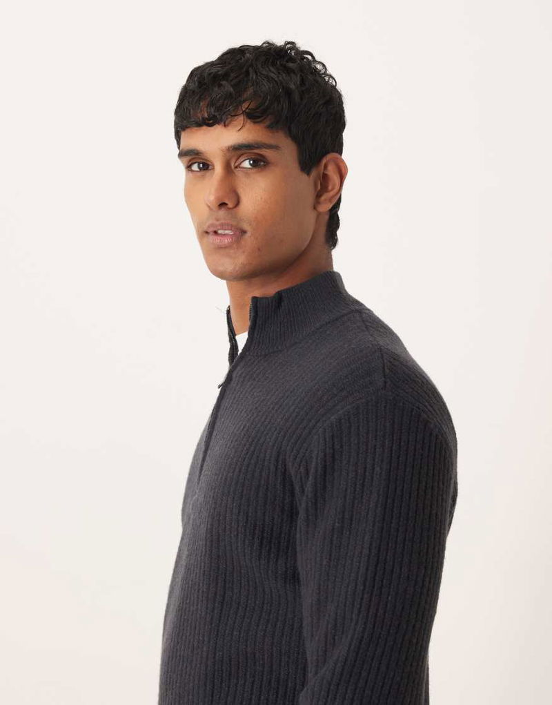 Wool Blend Quarter Zip Knitted Jumper In Blue