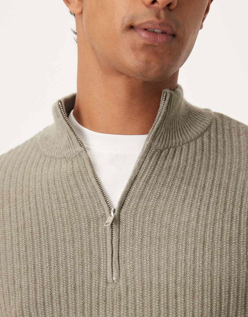 Wool Blend Quarter Zip Knitted Jumper In Sage Green
