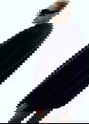 Crafted from a wool-blend fabric, this long, straight design features a V-neck with a lapel and a detachable fur collar. It has long sleeves with buttoned cuffs, two front flap pockets, and a front button fastening. Interior lining