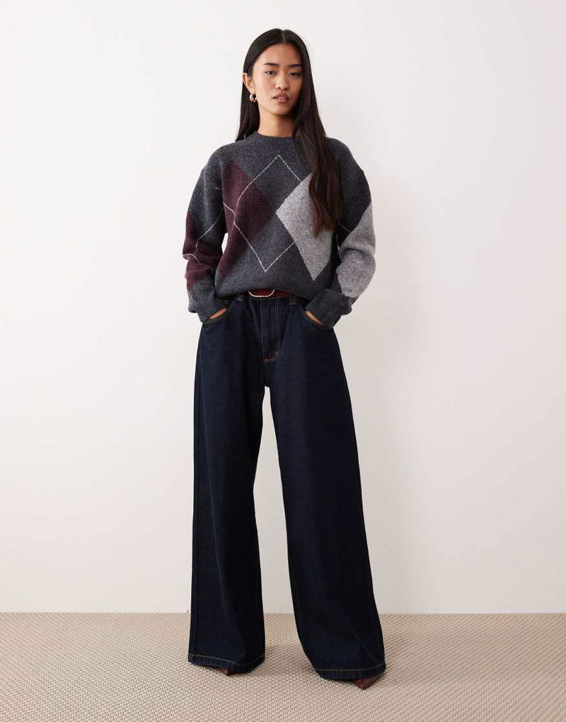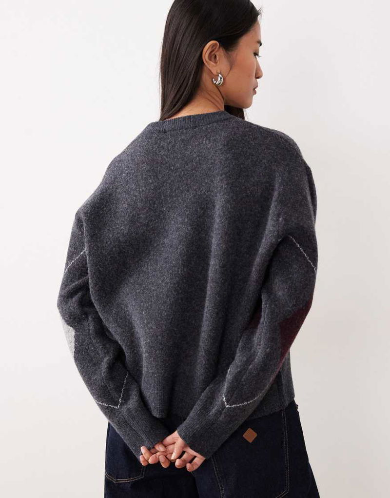 Wool Mix Argyle Jumper In Charcoal