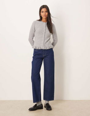 Wool Mix Bow Detail Cardigan In Grey