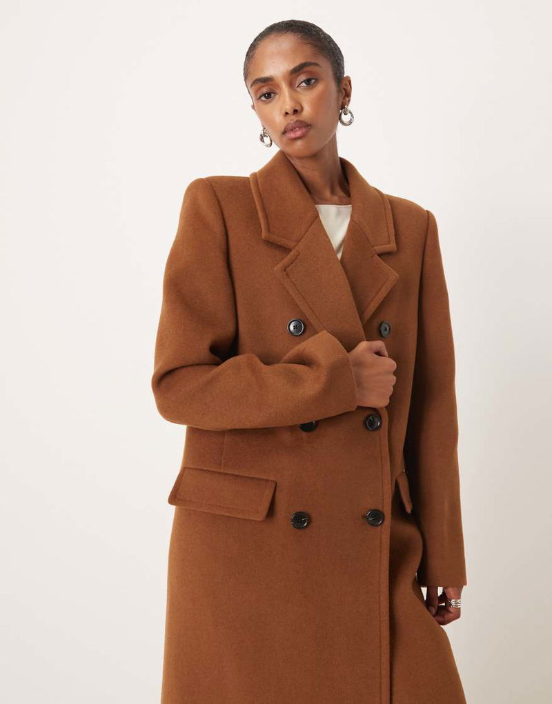Wool Mix Double Breasted Tailored Jacket In Brown