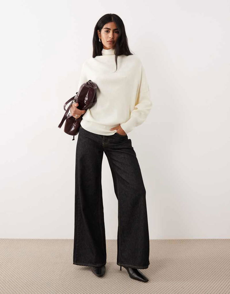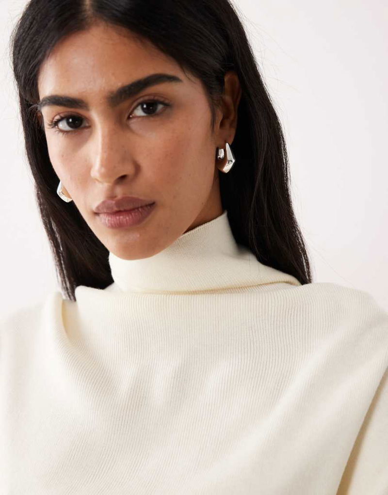 Wool Mix Roll Neck Jumper In Cream