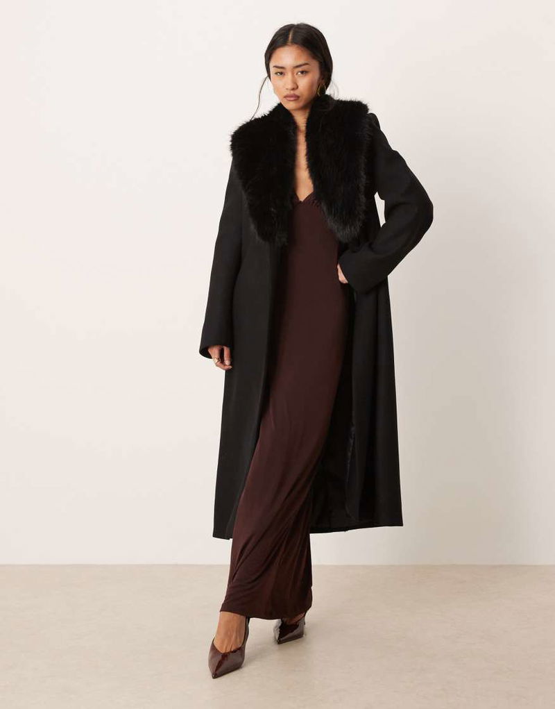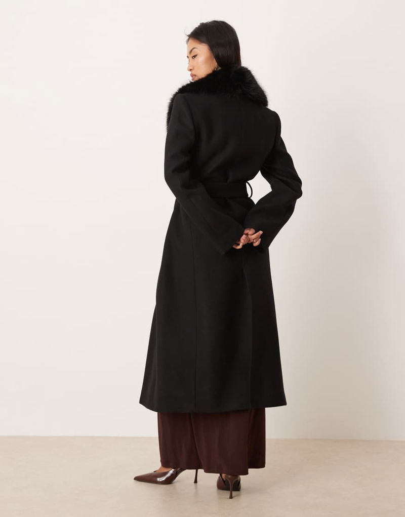 Wool Mix Tailored Coat With Faux Fur Collar In Black