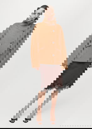 Crafted from a wool-blend fabric, this long and straight design features an elegant notched lapel V-neck. It has long sleeves, two front flap pockets, and a two-button closure