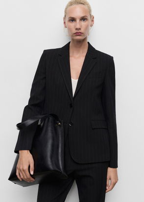 Viscose fabric, Fabric with wool, Structured, Straight design, Short design, Lapel-collar V-neck collar, Long sleeve, Two pockets with flaps, One button fastening, Inner lining.