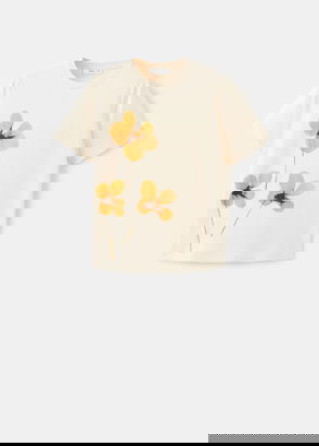 Cotton fabric, Tailored design, Cropped design, Printed design, Rounded neck, Short sleeve, Contrasting finish, Unclosed.
