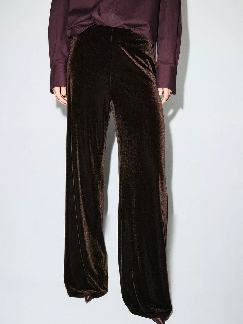 Xenphant Velvet Wide Leg Trousers, Brown