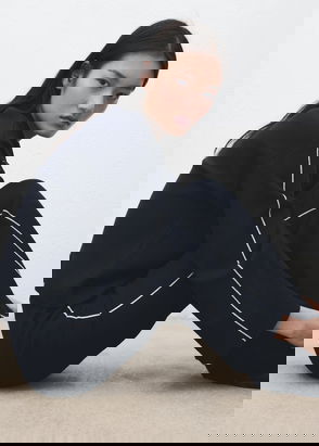 Fine knit fabric. Straight design. High-neck zip. Long sleeve. Front closure.