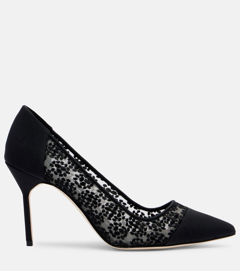 These Capcour pumps from Manolo Blahnik showcase a distinctive lace construction, finished with solid trims on the toes and heels. The pointed silhouette is complemented by slender 90mm heels.