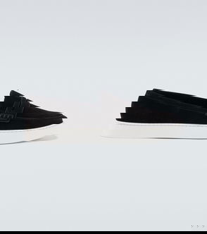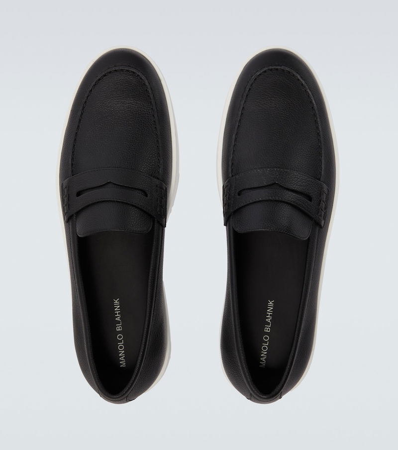 Mario Leather-Trimmed Raffia-Effect Loafers