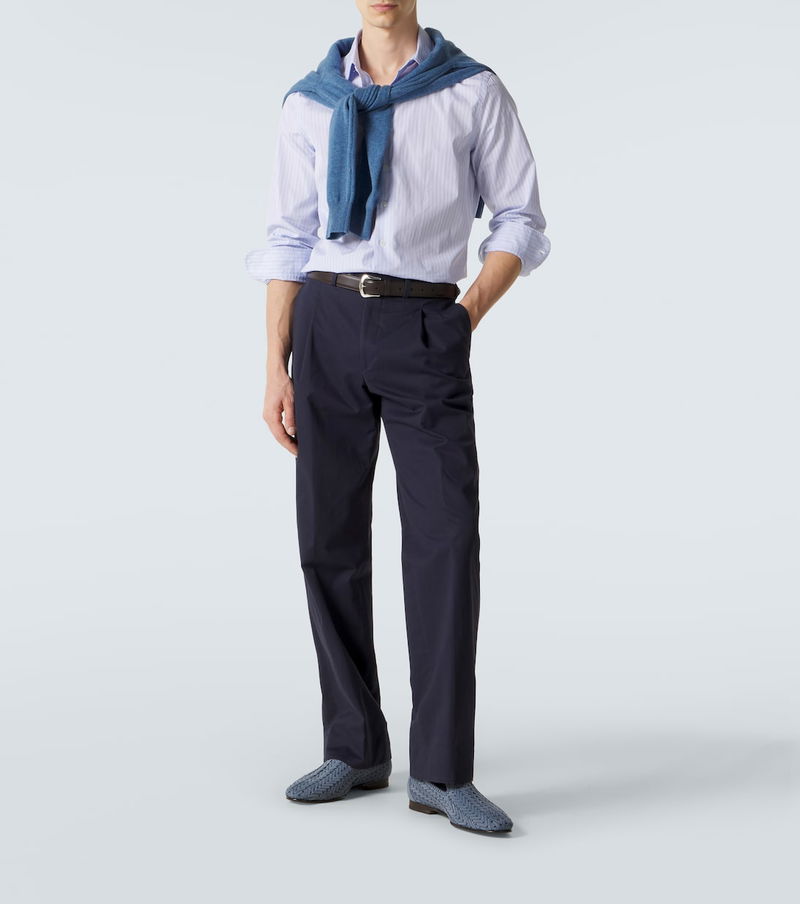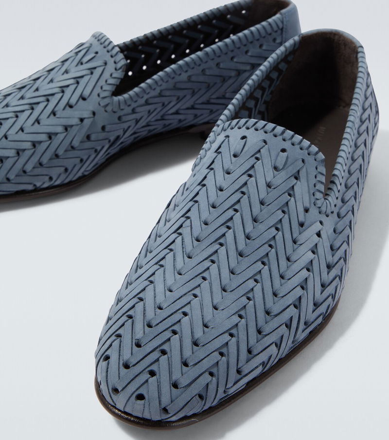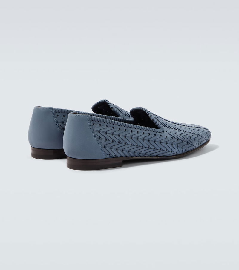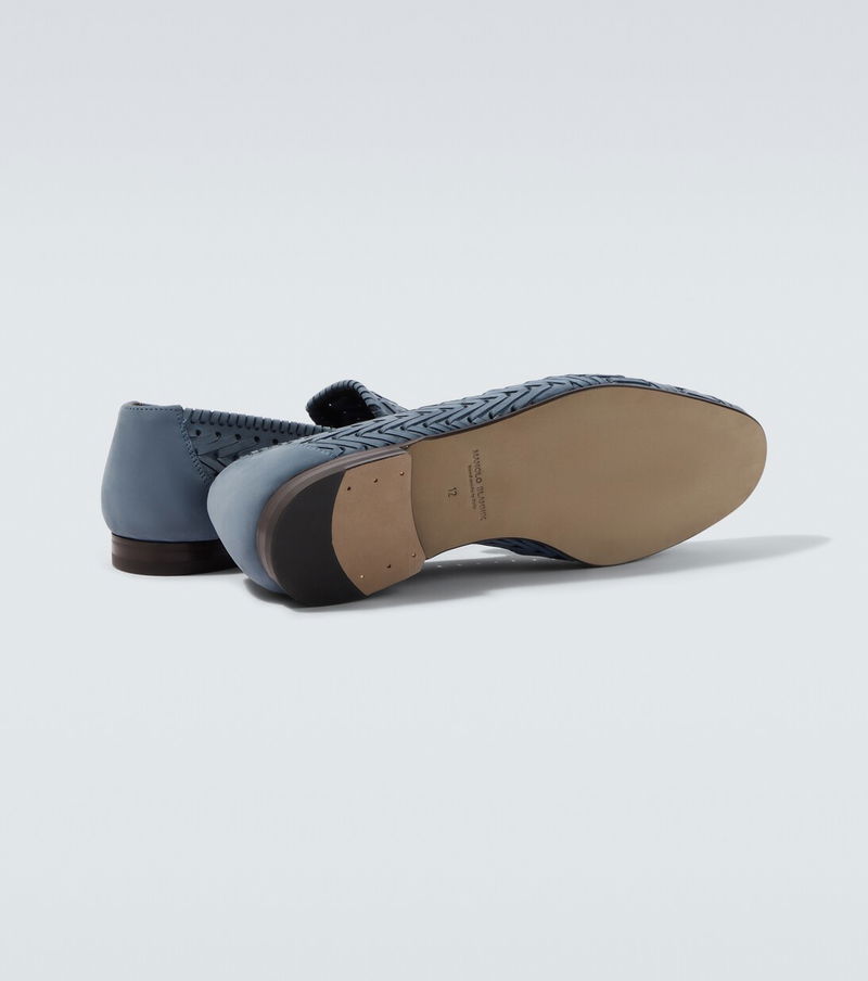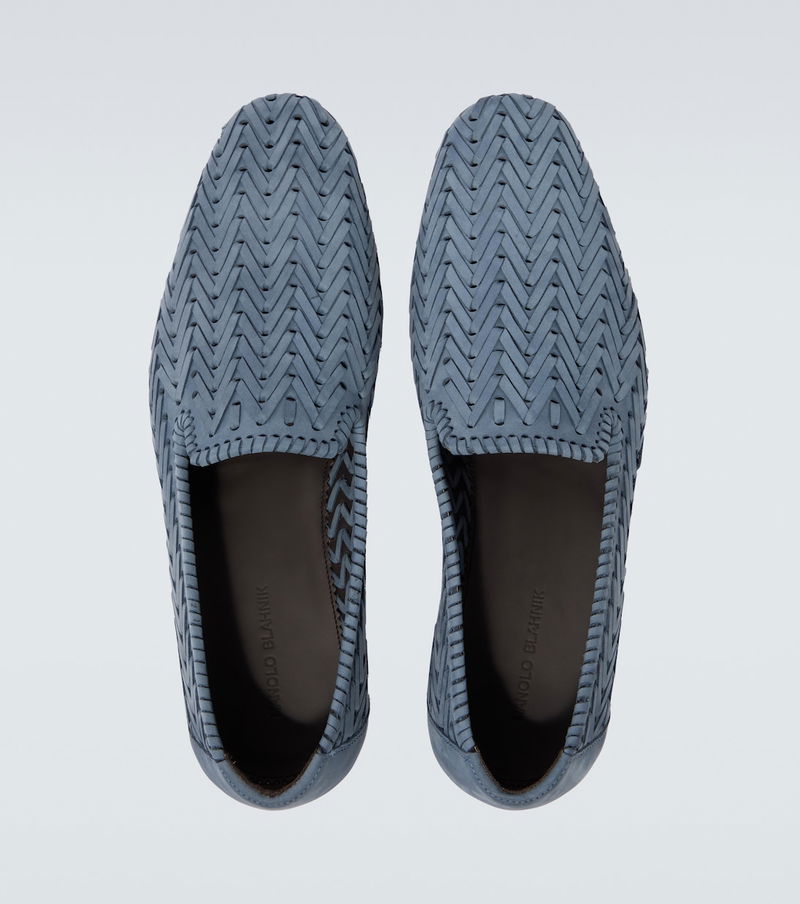 One of the world's most celebrated shoe designers, Manolo Blahnik stands on the pillars of creativity and craftsmanship. Carefully crafted in Italy from blue leather, the Mario loafers are a sleek pair with rounded-toe silhouettes and a distinct woven design.