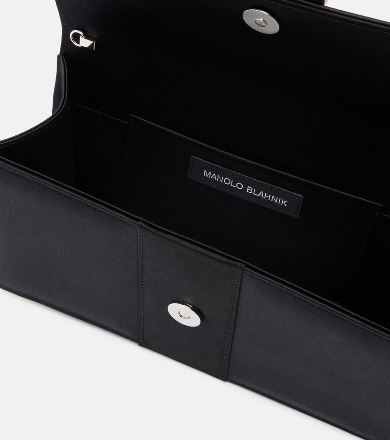 The Maycapjou clutch from Manolo Blahnik is made from lustrous satin and adorned with the brand's signature dazzling crystal buckle. Its detachable shoulder strap and magnetic-tab fastening make it the perfect accessory for a summer night out.