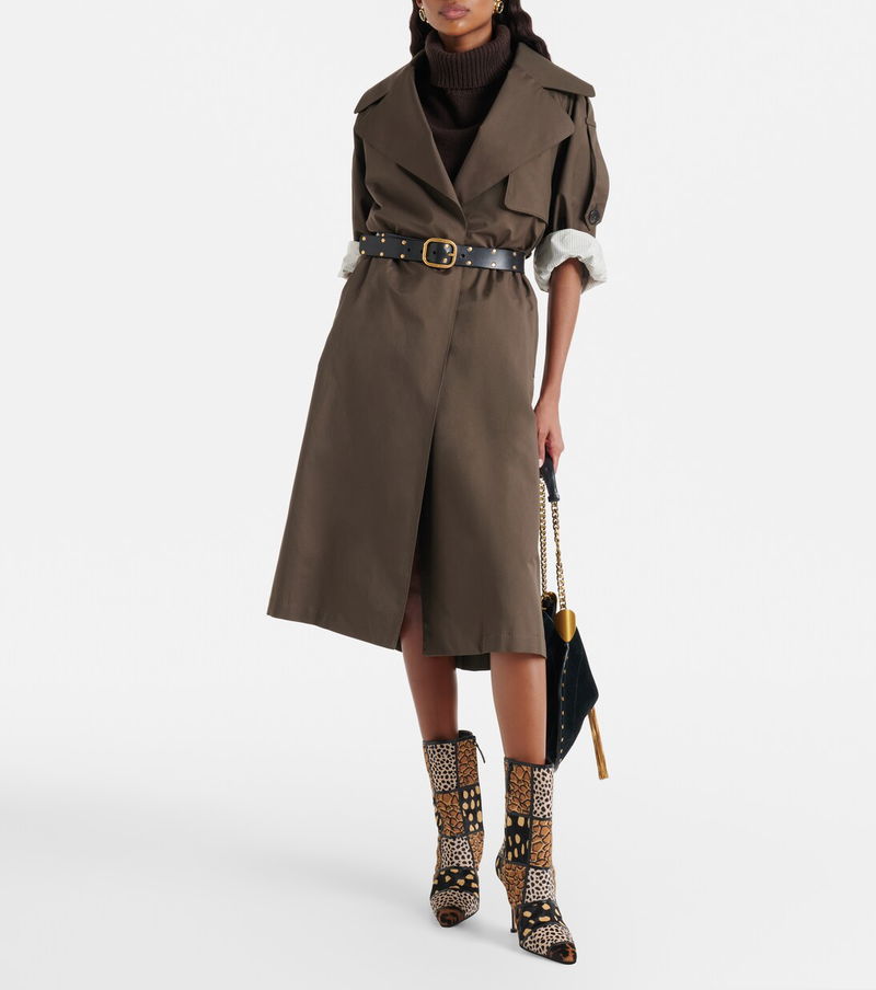 The Trulona ankle boots by Manolo Blahnik are designed with a sleek pointed toe and an animal print for a sleek finish. A 105mm stiletto heel adds height while maintaining an elegant, modern silhouette.