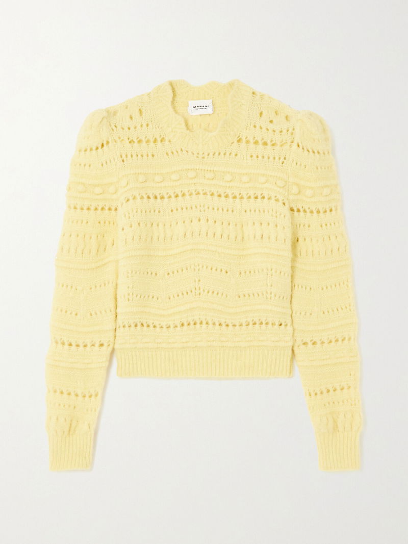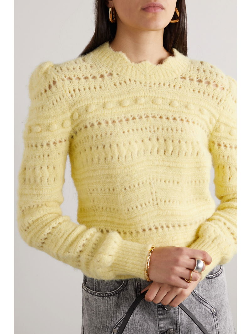 Marant Étoile's 'Adler' sweater is knitted from an alpaca-blend using an array of different techniques that give it unique texture and airy handle. Designed for a slightly loose fit, it has a scalloped, ribbed neckline and puffed shoulders.