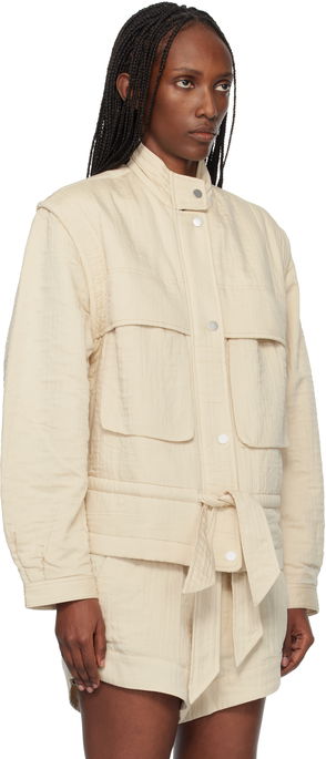 Padded and quilted plain-woven cotton jacket. Printed graphic pattern, embroidered trim, and embroidered mirror appliqués throughout.