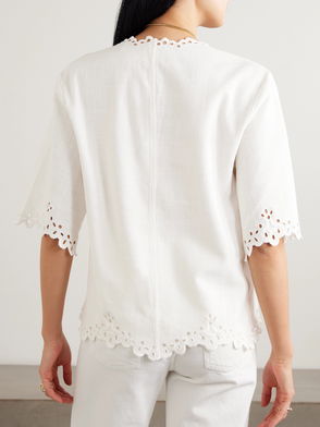Marant Étoile's 'Dilama' blouse is made from organic cotton-voile with pretty broderie anglaise detailing and crocheted trims. It's gathered along the high neckline to enhance the floaty shape and has a cropped hem. Wear yours with the matching shorts.