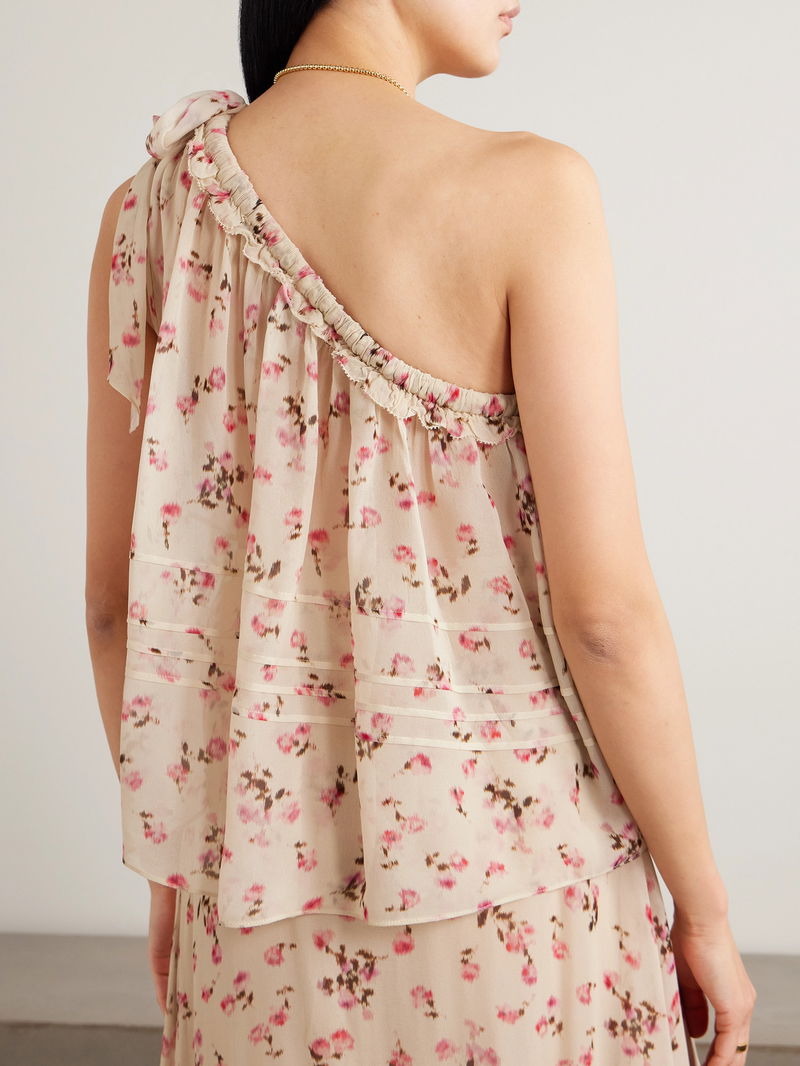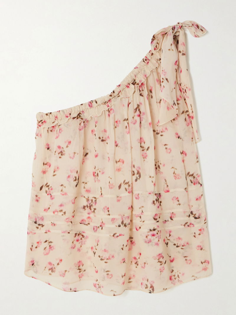 Rooted in the carefree sartorial attitude of Marant Étoile's native Paris, this 'Loeva' top is cut from airy, semi-sheer crepe de chine dotted with dainty florals. The asymmetric knotted shoulder, ruffled neckline and pintucked details showcase the label's technical standard.