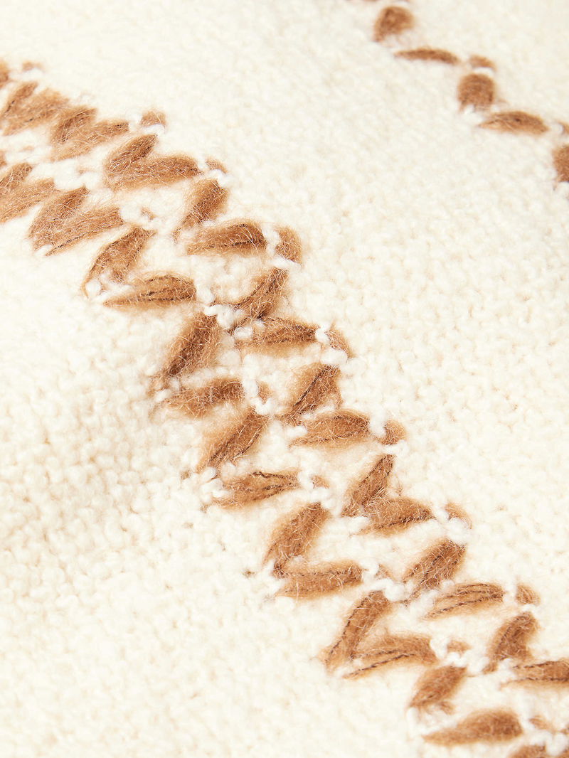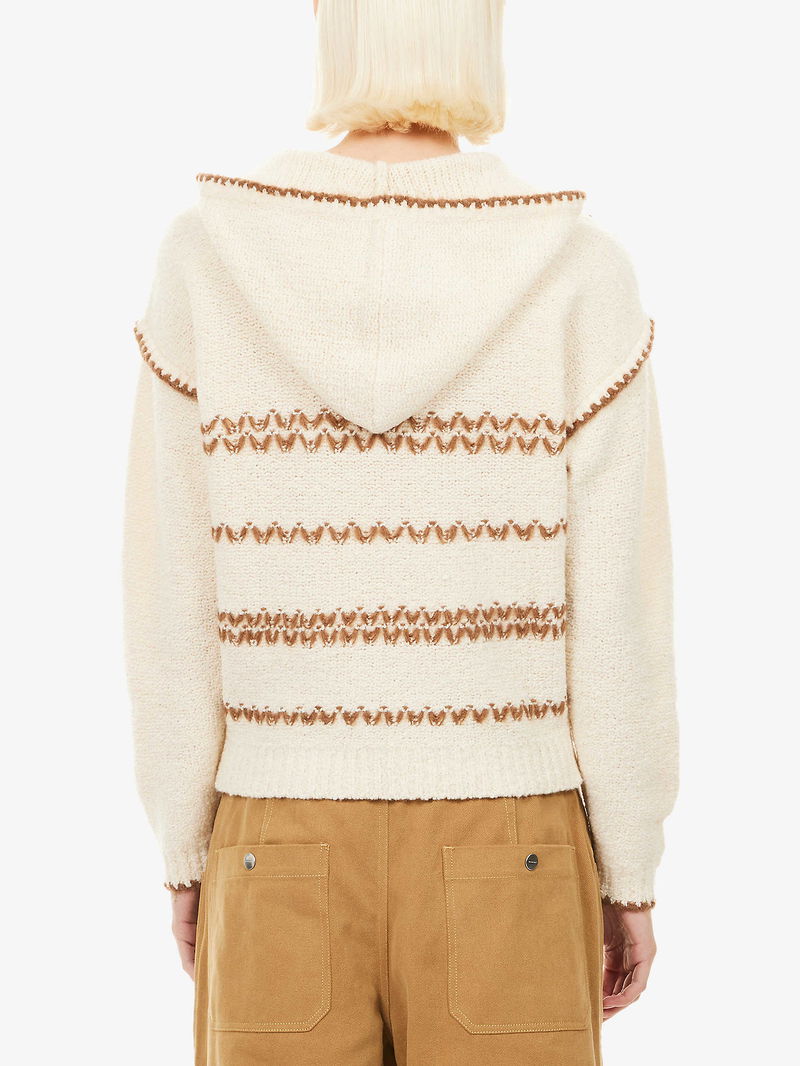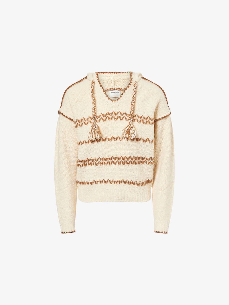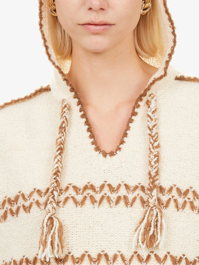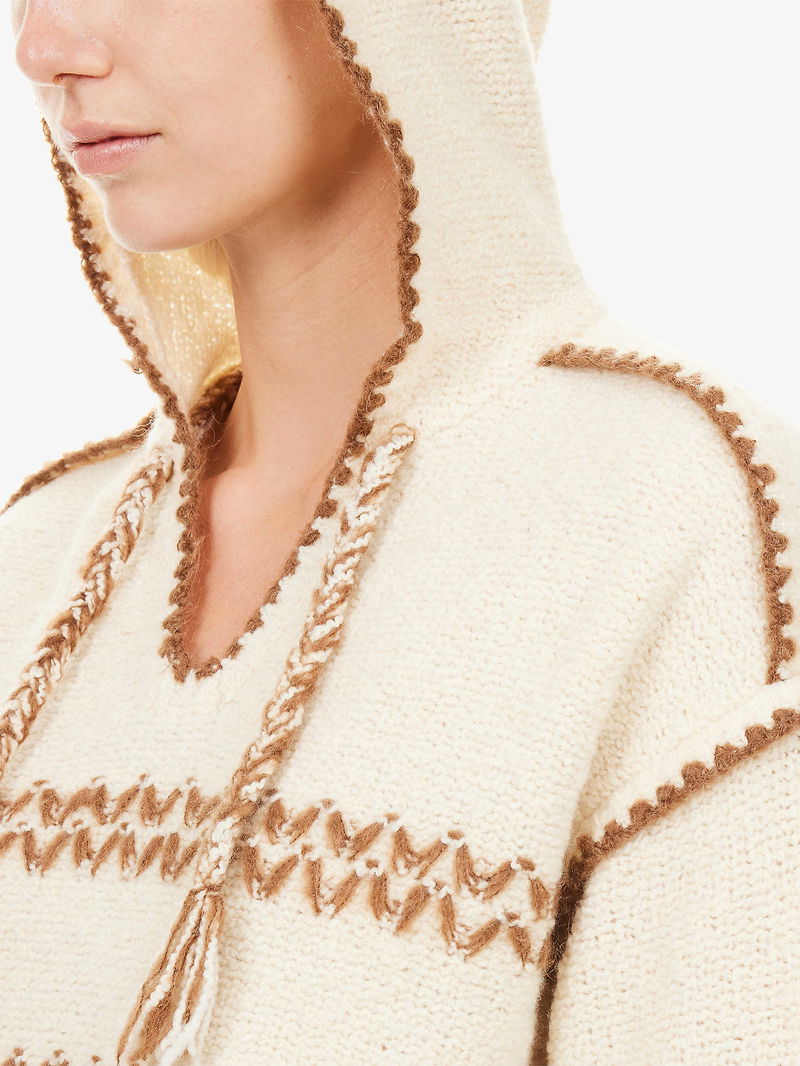 Relaxed fit, self-tie fastening hood, dropped shoulders, long sleeves, embroidered at front and back, embroidered ribbed trims.