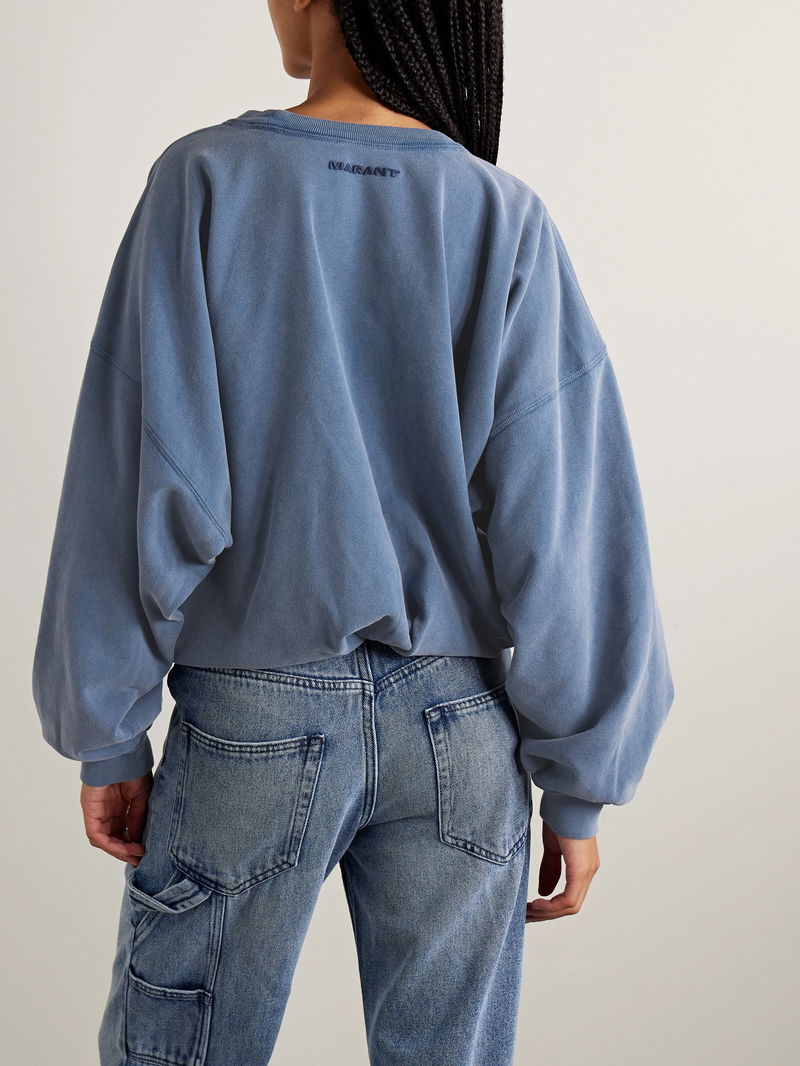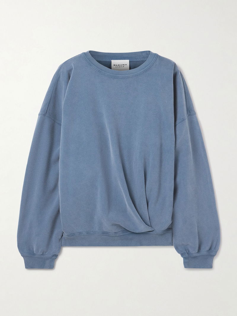 Marant Étoile's 'Sauria' sweatshirt is gathered along the hem, creating subtle texture and volume. It's cut from cotton-jersey in a soft blue shade.