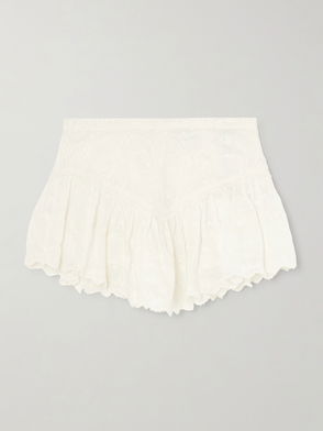 Zoelia Embroidered Scalloped Cotton And Silk-blend Mini Skirt