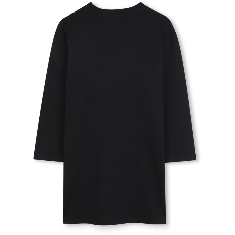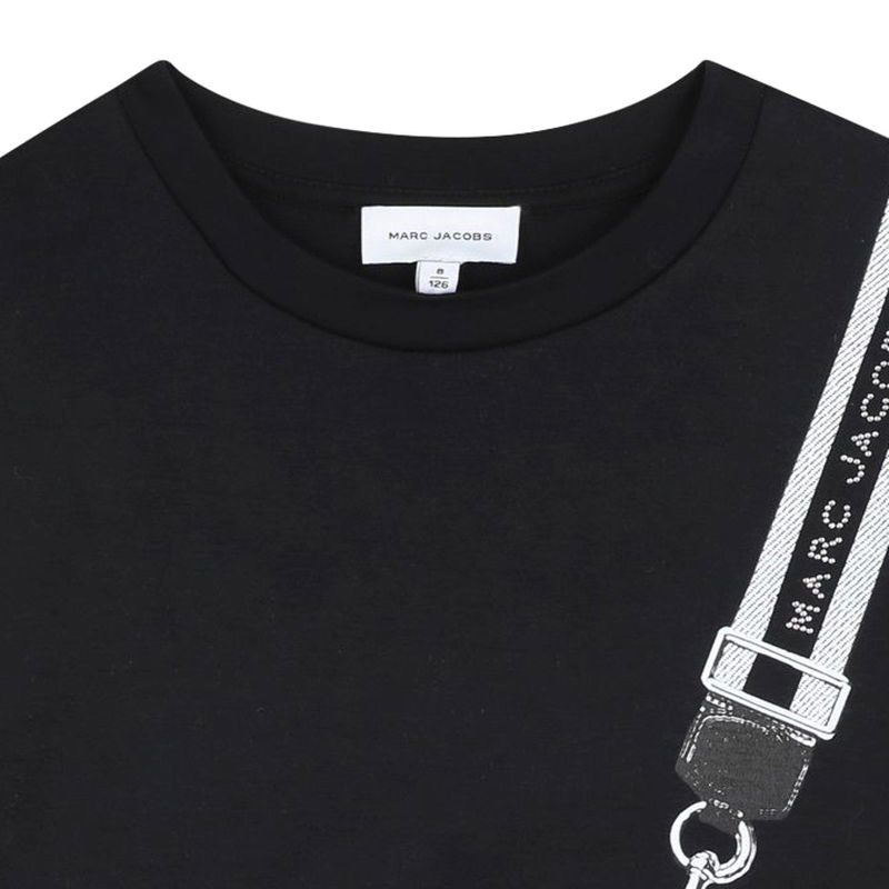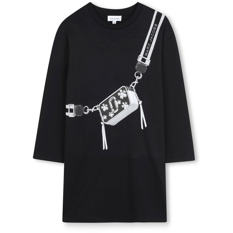 The Marc Jacobs Kids' Snapshot T-Shirt Dress translates the brand's design into a relaxed casual style. This youth fashion piece maintains the Marc Jacobs logo while providing comfortable wear for active children.