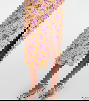 Markarian channels celestial glamour through couture-level silhouettes and a distinctly romantic perspective. The Rousseau brocade midi dress is adorned with a floral motif and designed with a strapless, structured bodice that flows seamlessly into a flared, voluminous skirt.