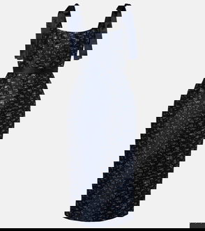 Markarian channels celestial glamour through couture-level silhouettes, intricate embellishment, and a distinctly romantic perspective. The Yolanda gown is cut from golden brocade into an off-shoulder silhouette, complete with a back slit.