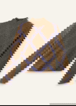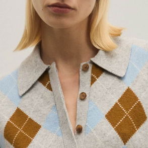 Slips on Regular fit, V-neck, long sleeves, all-over argyle-knit pattern, loose-thread detail, ribbed trims, straight hem.