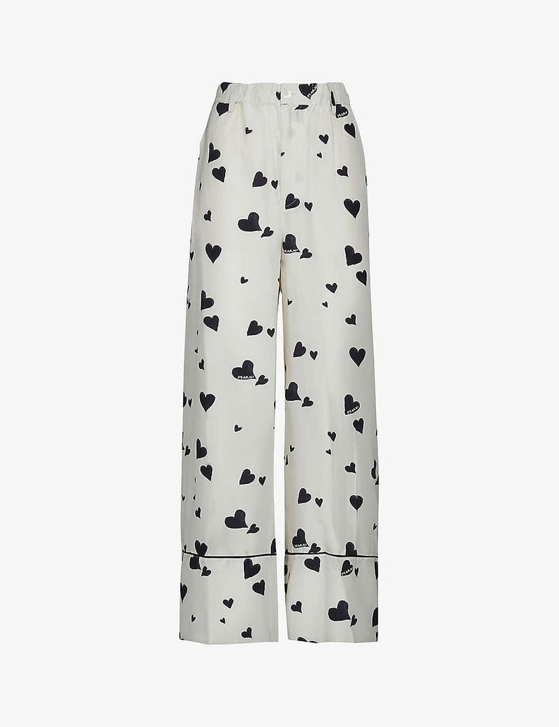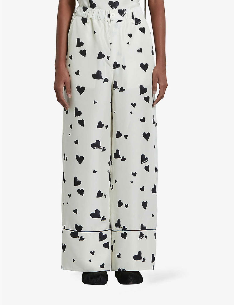 Love is in the air... or at least it will be once you slip on these charming trousers from Marni. Never one for a fling; the Italian label summons a jovial spectacle with its irreverent, sunset-tinted creations, this playful pair included. Crafted from swathes of liquid-like silk, this style sits high on your waist before falling to a sweeping, flared-leg silhouette. Then, for a final dusting of Marni’s magic, they’re dotted with floating hearts entwined with the label’s lettering.