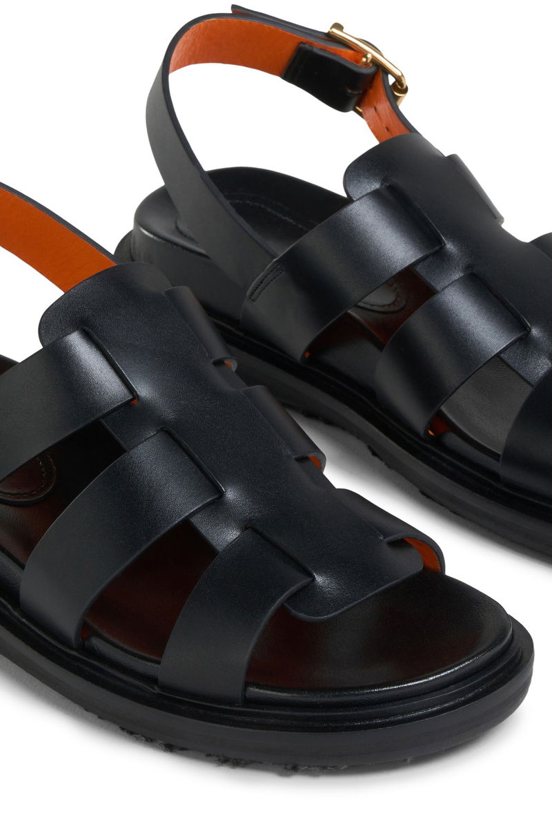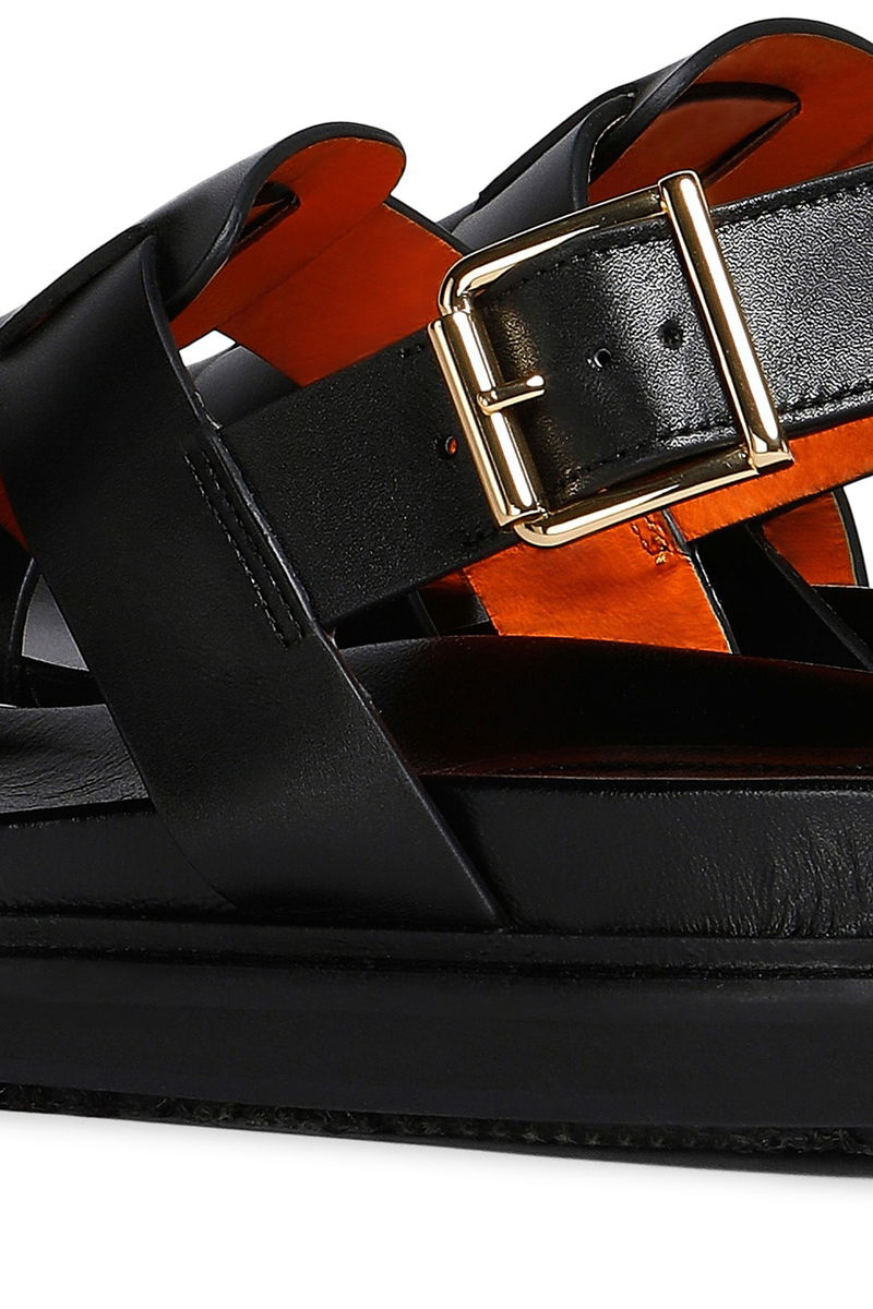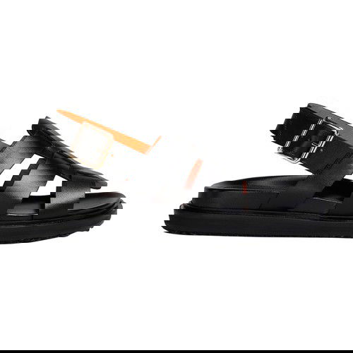 Open round toe Rear strap Flat Gold finish Buckled strap